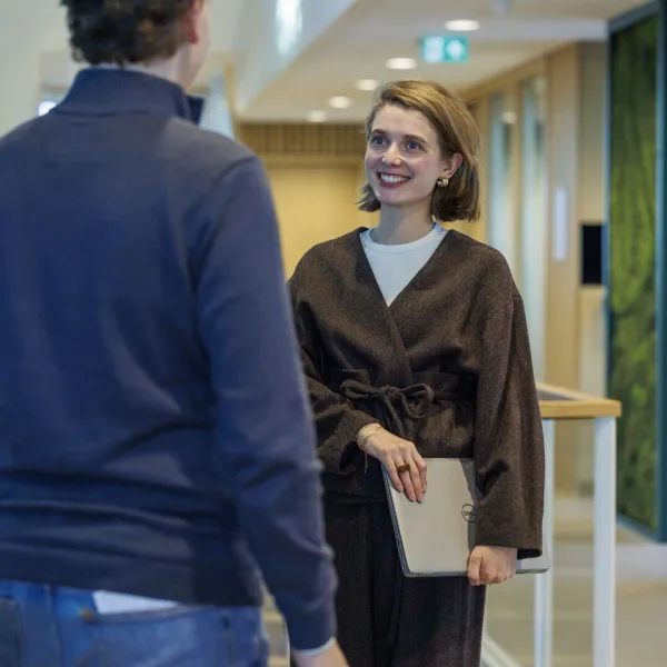 ‘Wat ik zo leuk vind aan mijn werk? Het ene moment vertaal ik nieuwe wetgeving naar beleid dat in de praktijk werkt en het volgende moment help ik een collega met een vraag over onze pensioenregeling. Binnen ons team werken we heel fijn samen. Die combinatie van betrokken collega’s, je vastbijten in een vraagstuk en écht iets kunnen betekenen voor anderen geeft mij energie.’